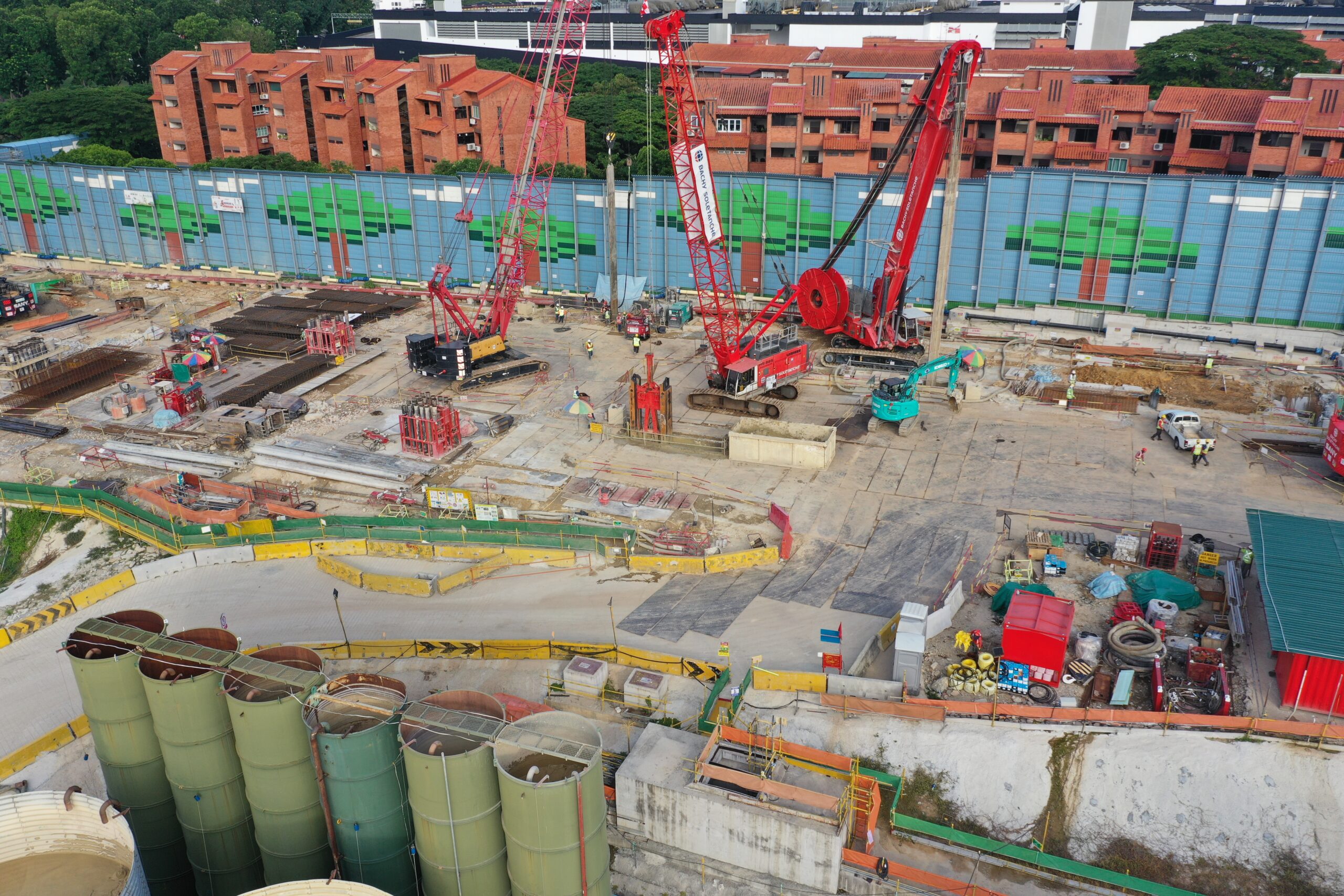 Bachy Soletanche Singapore’s scope of work for Contract CR106 involves foundation and earth retaining works in relation to the design, construction, and completion of Loyang Station and associated structures. The project includes cut-and-cover (C&C) tunnels, bored tunnels connecting Loyang Station to Pasir Ris East Station, a Tunnel Boring Machine (TBM) receiving shaft, and an elevated infrastructure. The works are carried out under mixed ground conditions comprising Fill, Old Alluvium, and Bukit Timah Granite.